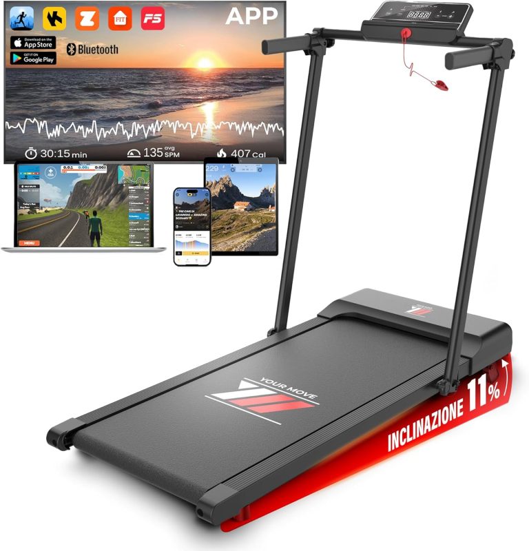Scopri YM Tapis Roulant Salvaspazio NEXT 1000 Your Move: allenati fino a 12 km/h con inclinazione e programmi guidati, massima stabilità e comfort in un design pieghevole con assistenza italiana
